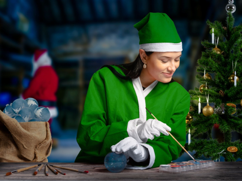 Vi laver smykker, laver juledekorationer og maler på julekugler.